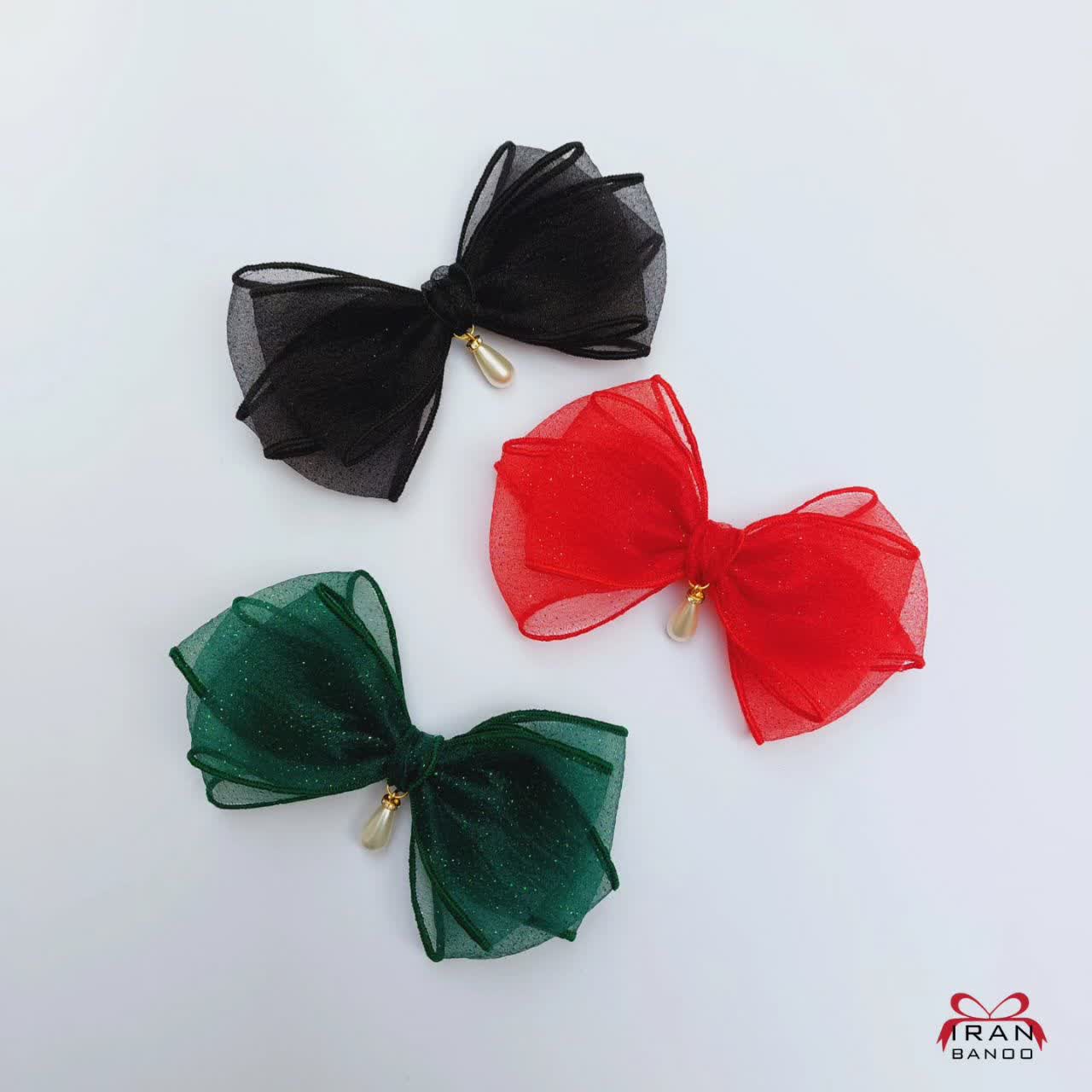 گیره مو پاپیون برجسته نگینی و مروارید دوزی شده۱۱۰٬۰۰۰ تومان