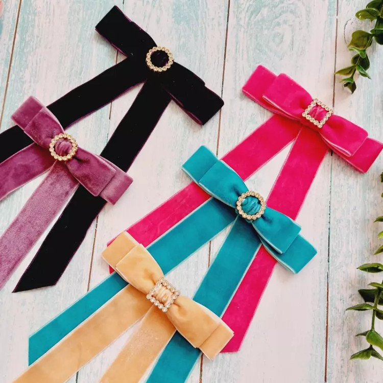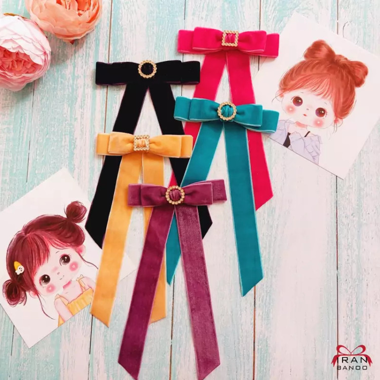 پاپیون مخمل دنباله دار بسیار سبک و جذاب خوش قیمت رنگ بندی موجود در تصویر سرخابی ،سبزآبی ، بادمجانی سیر،گلبهی متمایل به نارنجی ، بادمجونی روشن