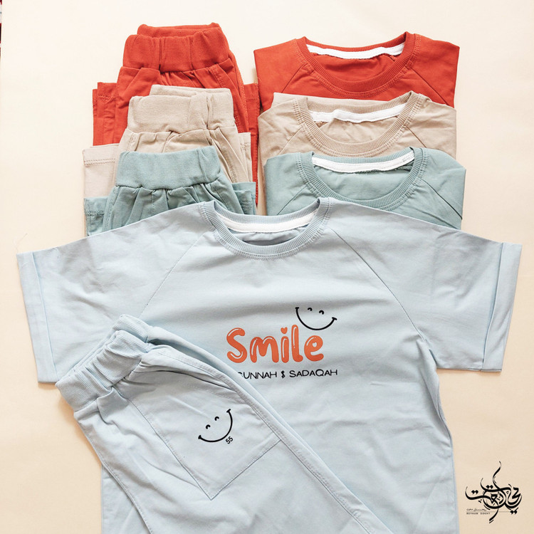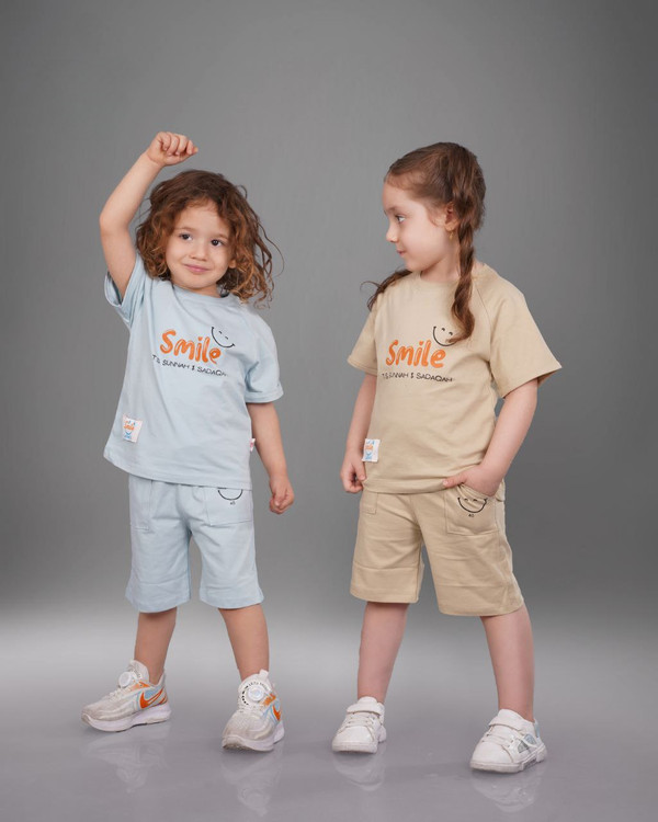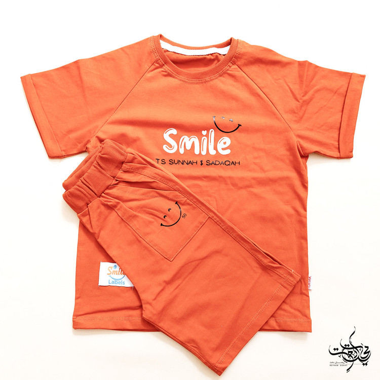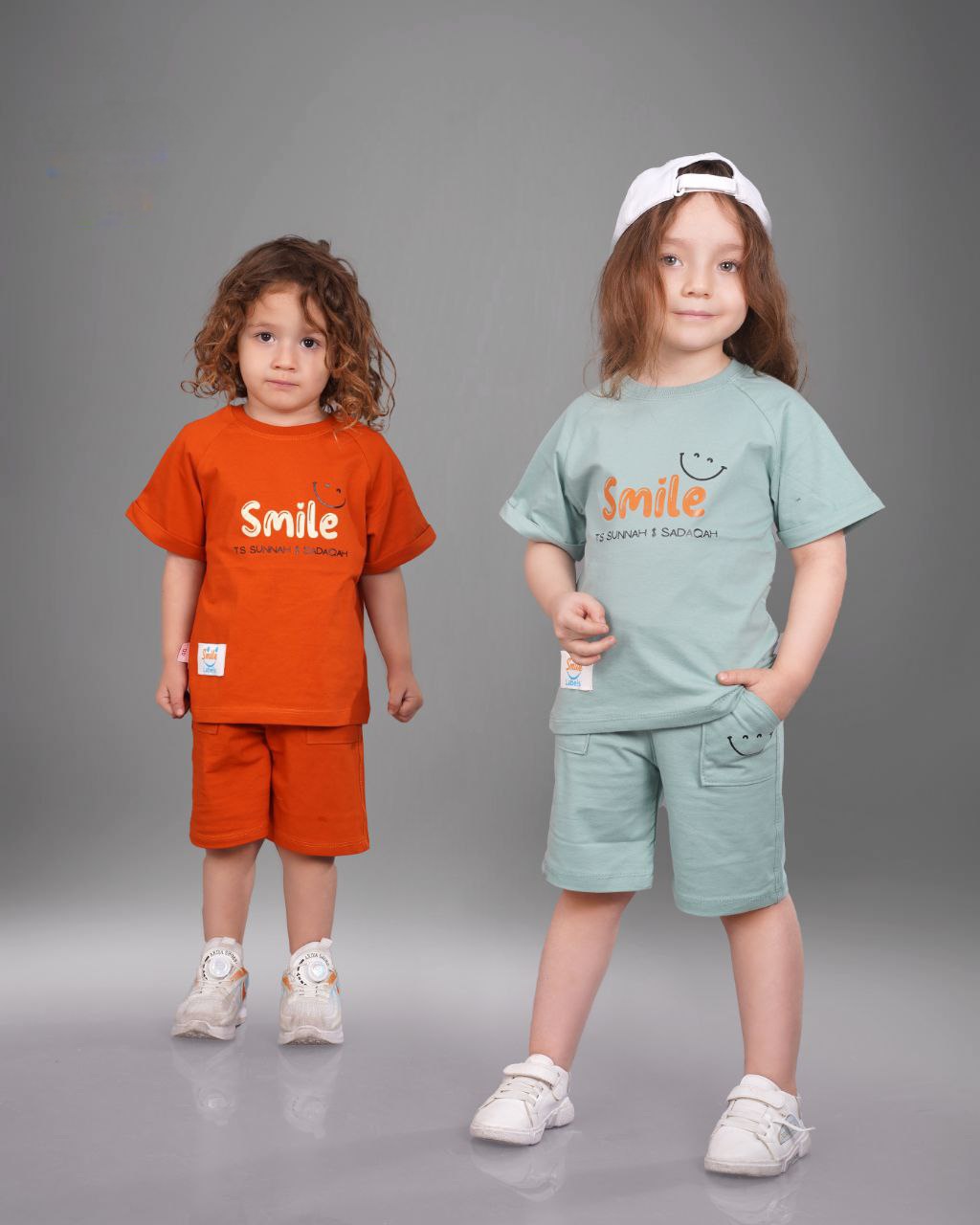 ست تیشرت و شلوارک اسپرت طرح لبخند