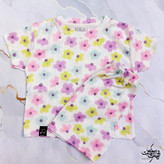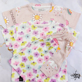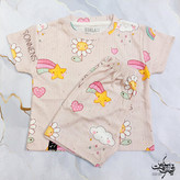 ست تیشرت شلوارک دخترانه طرح رنگبن کمان و شکوفه