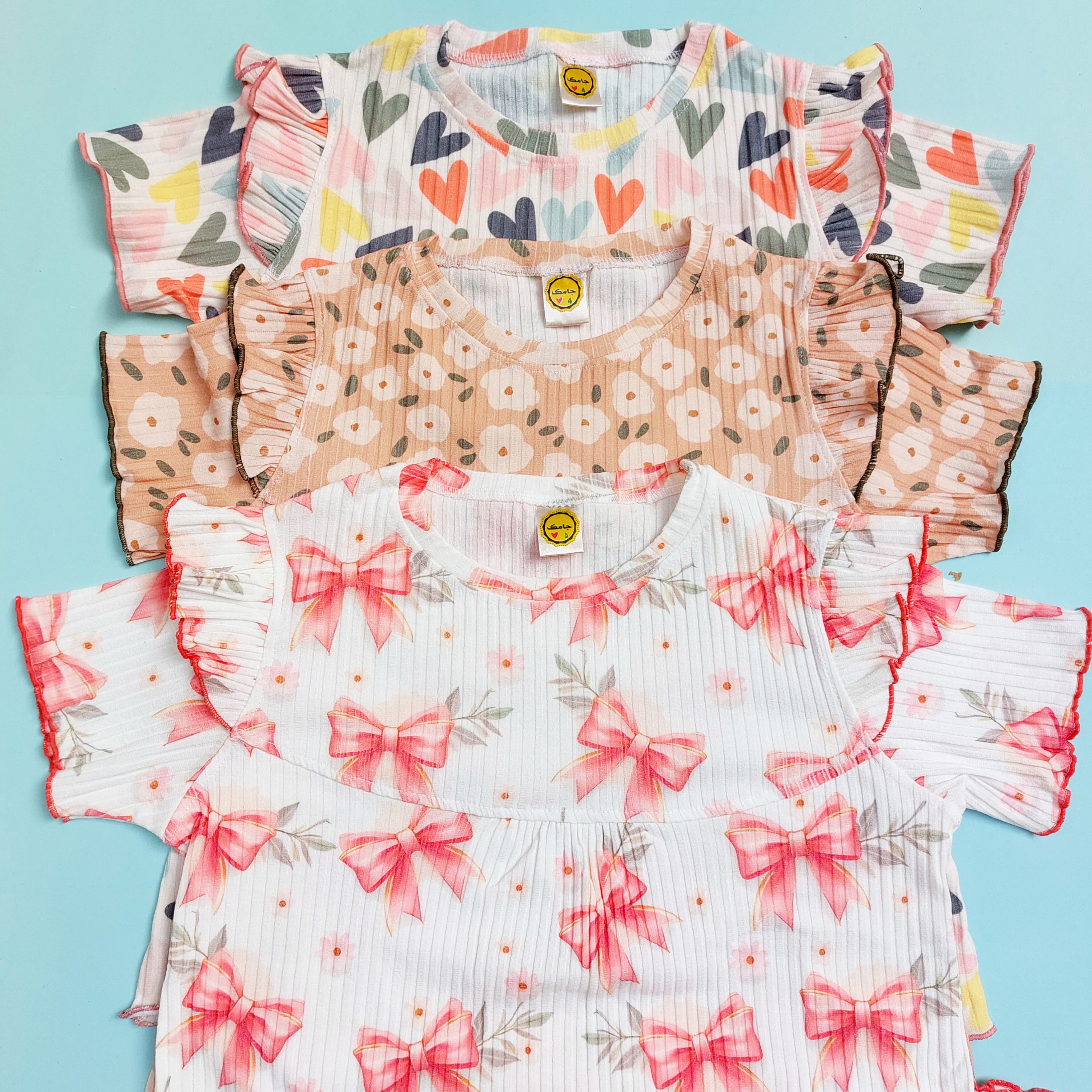ست تیشرت و شلوار راحتی دخترانه در سه طرح پاپیونی،قلبی و گلی