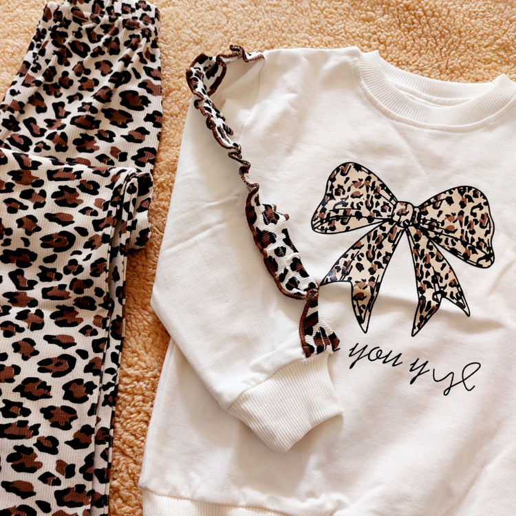 ست بلوز شلوار پاپیون پلنگی دخترانه