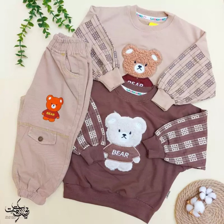 ست بلوز و شلوار بیرونی تدی پشمالو با شلوار کتان😍 یه کار فوقالعاده شیک و جذاب 🤩 ➖️مناسب دختر و پسر ➖️در سه سایز 40 ،45، 50 سن 2 تا 6 سال ➖️قواره بلوز لش ➖️جنس بلوز دورس دو نخ و جنس شلوار کتان پنبه ➖️در دو رنگ کرم و قهوه ای سایزبندی : سایز 40: قد لباس40 قد آستین از گردن38 عرض لباس39 قد شلوار 51 قد فاق22 سایز 45: قد لباس45 قد آستین از گردن 43 عرض لباس 38 قد شلوار 58 قد فاق 23 سایز 50 : قد لباس 51 قد آستین از گردن 53 عرض لباس 42 قد شلوار 66 قد فاق 24 🔴 برای انتخاب درست لباس لطفا اندازه هارو با دقت چک کنید .