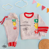 ست بلوز شلوار پسرانه آدم فضایی😍 الگوی این ست خاص و متفاوت از کارهای دیگست. ➖️جنس ملانژ و پنبه دورس لطافت و کیفیت فوق العاده ای داره ➖️ دو رنگ داره طوسی کمرنگ قرمز، طوسی پر رنگ زرد ➖️سایز کوچک(35،40،45) 🔴برای انتخاب درست لباس با دقت جدول اندازه ها را چک کنید.