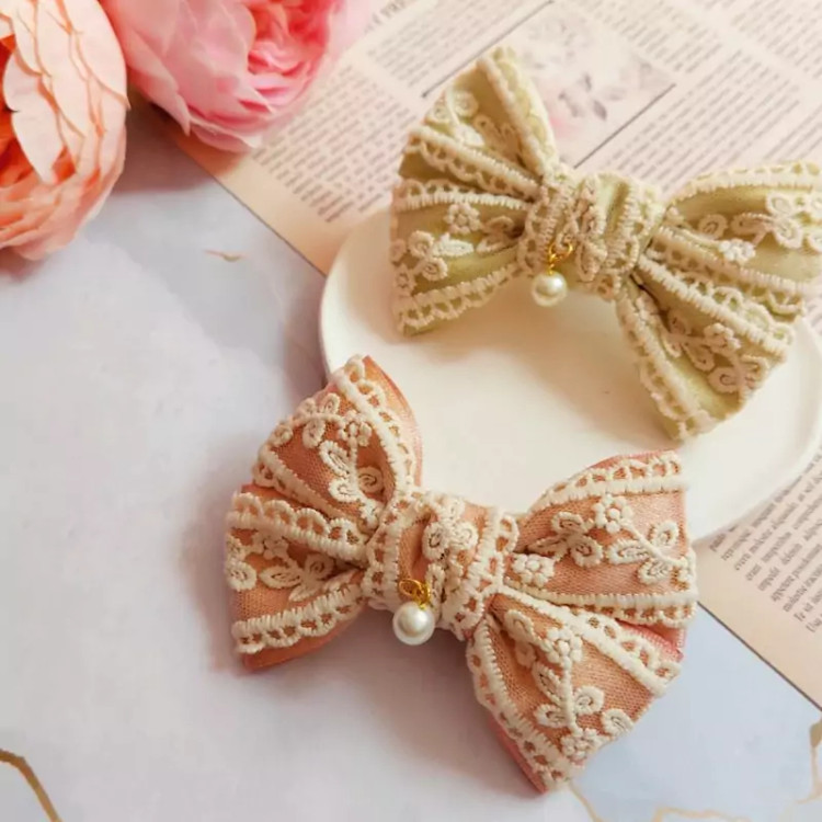 گیره مو پاپیون گیپوری در دو رنگ محشر رزگلد و طلایی😍 از کیفیت کار هرچی بگم کمه مرگ نداره اندازه عالی حدودا 10 تا 11 سانت مناسب مادر و کودک برخلاف خیلی از گلسرها به راحتی روی کش قابل استفاده هست اما اولویت اول به پیشنهاد من گیره هست . 🔴 در رنگ های دیگه هم قابل سفارش هست اما جنس روبان فرق می کنه و قیمت کمتر میشه .