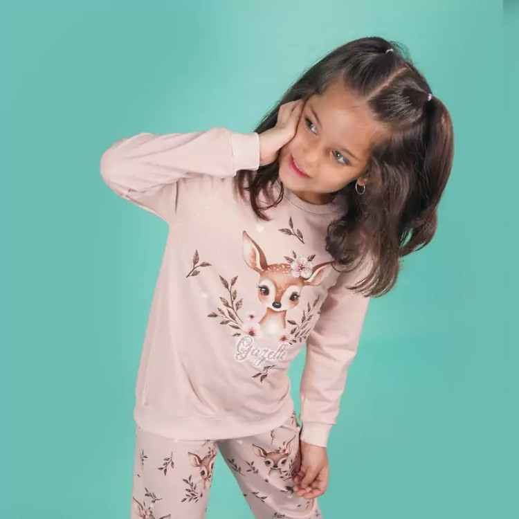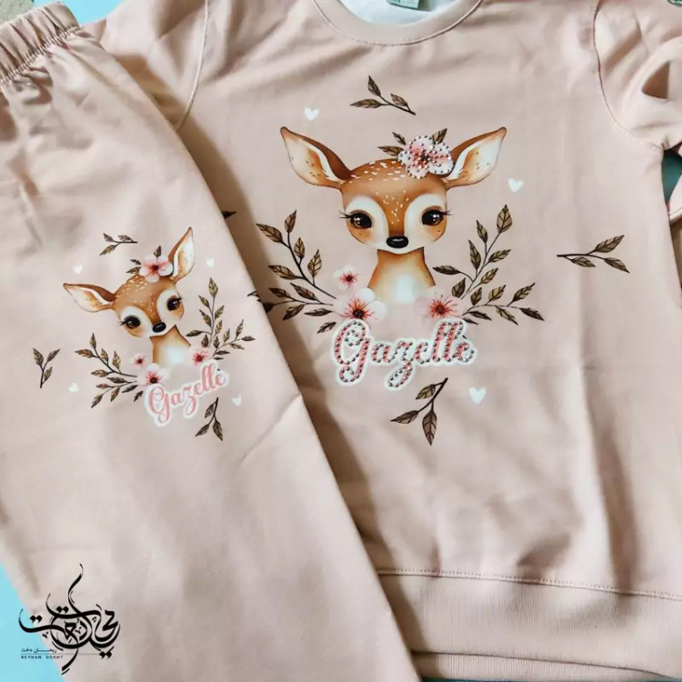ست بلوز شلوار دخترانه طرح آهو نگین دار